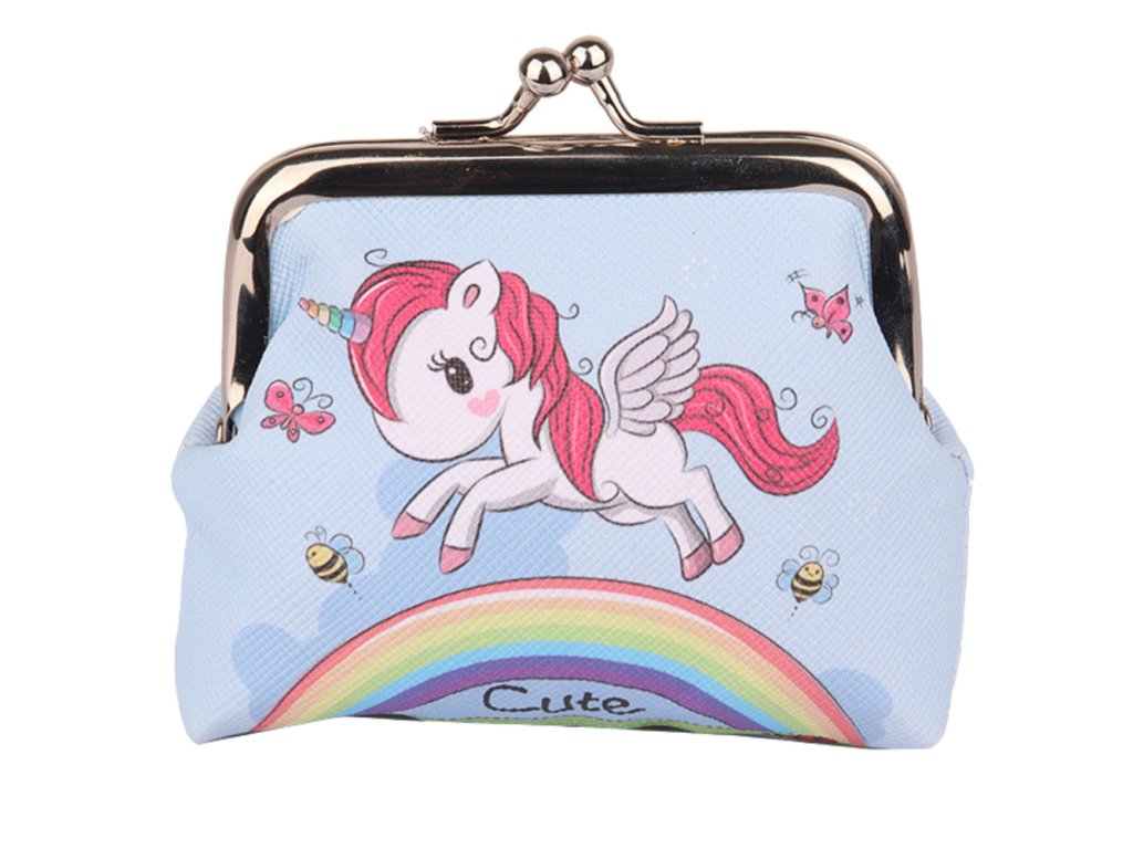 - 1 dětská peněženka s potiskem jednorožce nad duhou