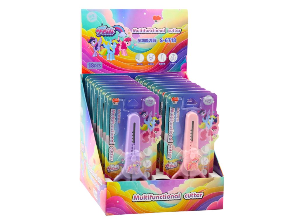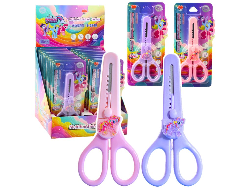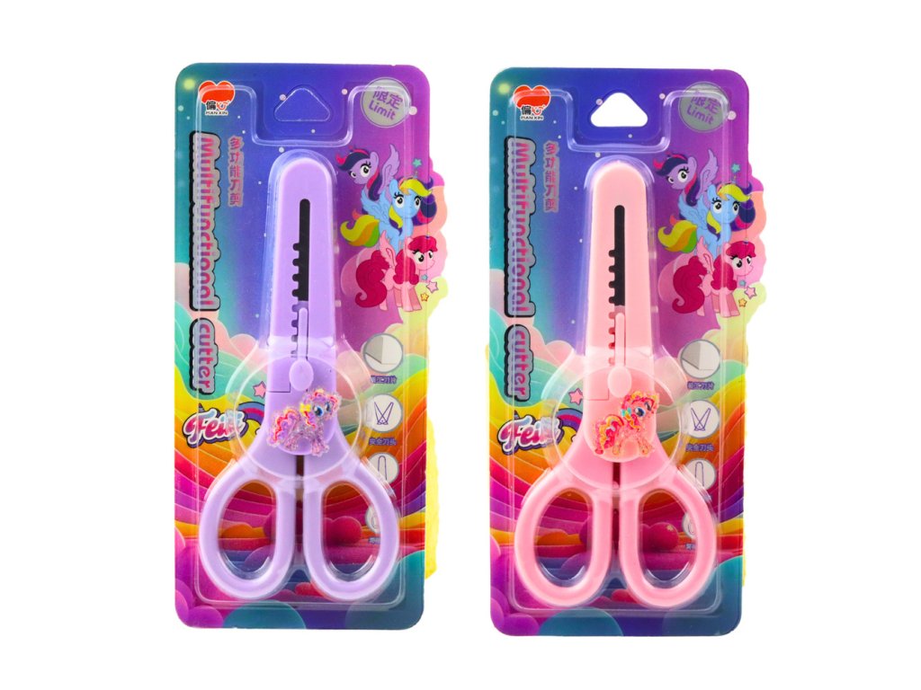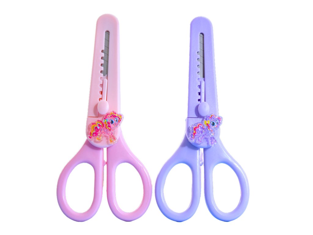 Barevné nůžky se štítem a ozdobným motivem koně jsou perfektní pomůckou pro nejmenší uživatele. Jejich pohádkový vzhled a pastelové barvy podporují kreativní hru a zároveň zajišťují bezpečí a pohodlí dítěte. Integrovaný ochranný kryt čepele zabraňuje náhodnému pořezání a umožňuje bezpečné uložení v penálu, batohu nebo zásuvce.
