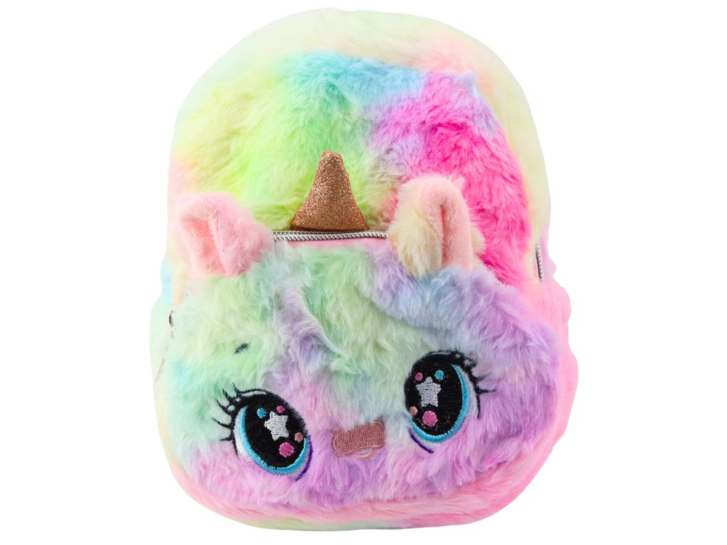 Tento plyšový batoh jednorožec je perfektní volbou pro nejmenší fanoušky barevných a měkkých doplňků. Tento batoh vyrobený z výjimečně měkkého, nadýchaného materiálu v duhových barvách potěší každé dítě. Jeho přední stranu zdobí rozkošný obličej s velkýma očima, růžovým nosem, zlatým rohem a odstávajícíma ušima – to celé vypadá báječně a výjimečně sladce.