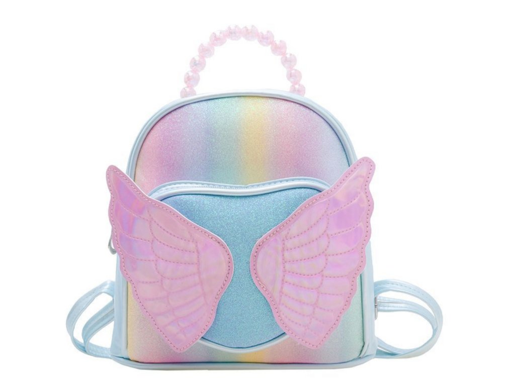 Stylový a originální dětský batoh s růžovým motivem křídel a lesklou, modrou přední částí je jedinečnou volbou pro nejmenší milovníky módních doplňků a pohádkových inspirací. Lesklý povrch v pastelovém odstínu a pečlivě provedené, barevné detaily efektně upoutají pozornost a potěší svým kouzlem. Ozdobná rukojeť z průhledných perel dodává celku eleganci a je zajímavým vizuálním akcentem. Díky svým malým kompaktním rozměrům se batoh bude skvěle hodit do školky, každodenní procházky, cestování a také jako okouzlující doplněk dětských her a setkání s vrstevníky.
