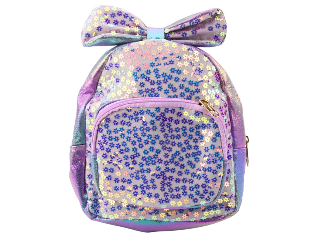 - Dětský fialový batoh s mašlí a flitry