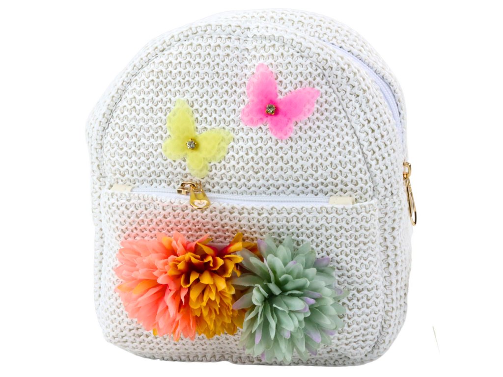 Okouzlující, malý dětský batůžek s vyšívaným povrchem je perfektní volbou pro nejmenší. Jemná textura materiálu v kombinaci s dekorativními aplikacemi v podobě barevných motýlků a trojrozměrných květin vytváří jemný a dívčí design, který jistě potěší každé dítě.
