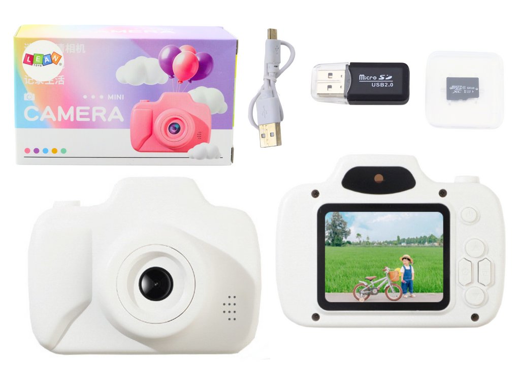 Fotoaparát pro děti Fotky Nahrávání Hry Paměťová karta 64GB Bílá