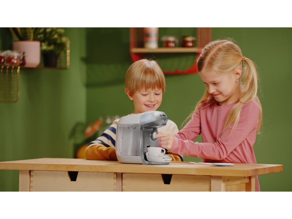 Tato hračka na kávovar Tassimo Bosch umožní každému dítěti bezpečným a zábavným způsobem napodobovat své rodiče.