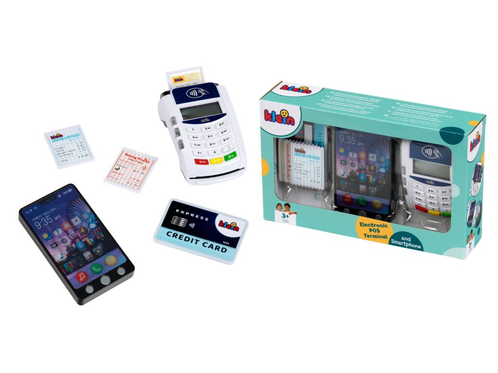 Platební terminál pro hračky s příslušenstvím a chytrým telefonem