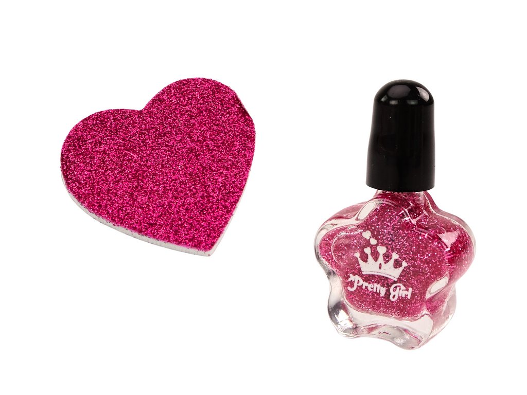 Sada obsahuje také třpytivý lak na nehty, který dodá vašemu stylingu lesk a šmrnc. Celek doplňuje pilník ve tvaru růžového srdce, který umožní precizní dokončení a doladění detailů.