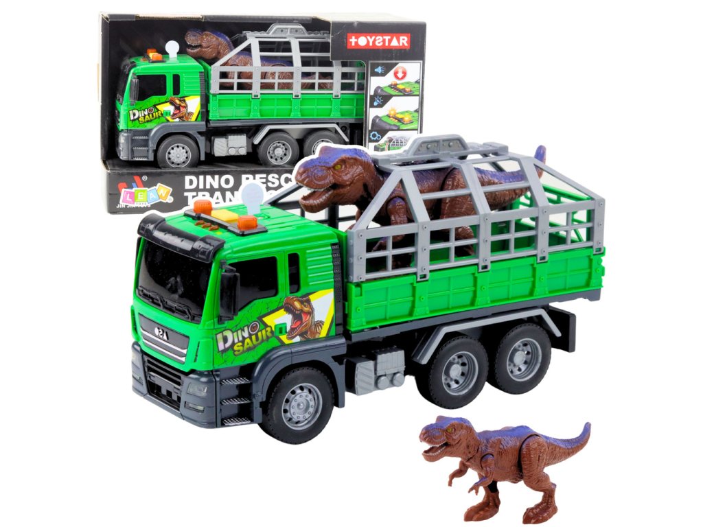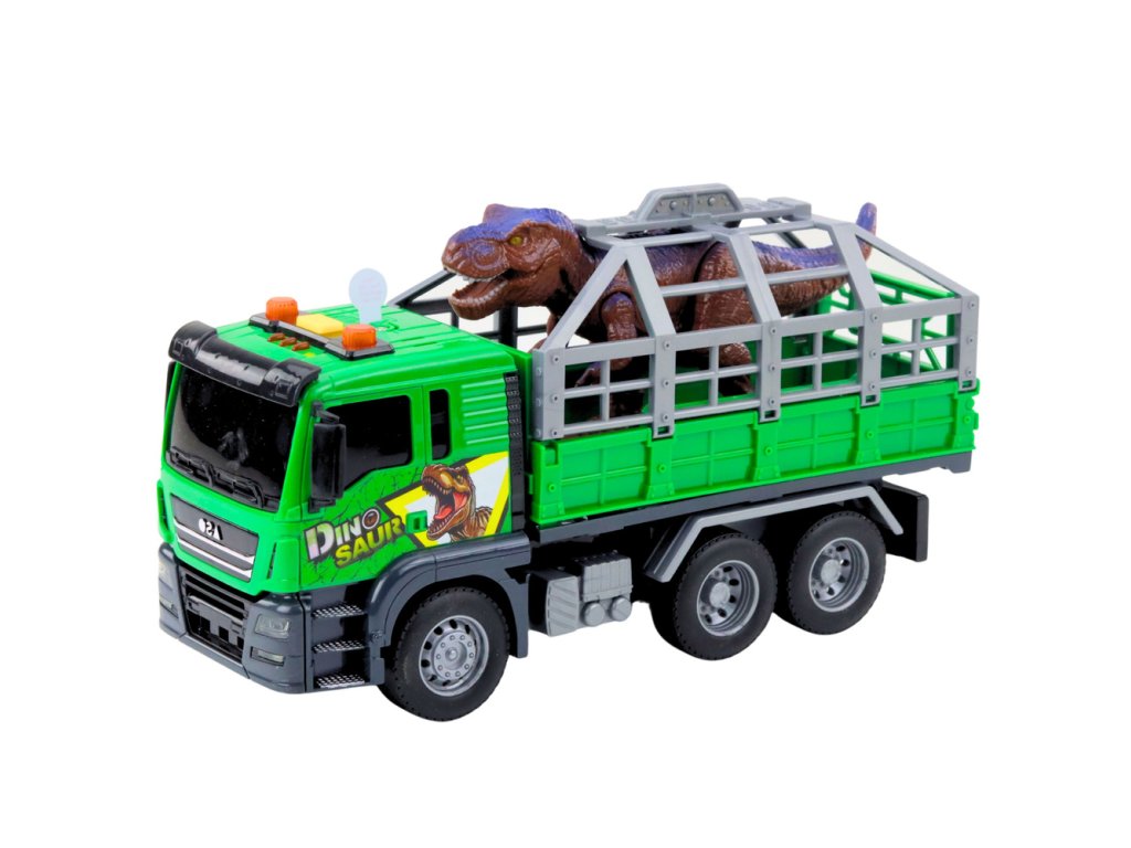 Dinosauří přepravní kamion s figurkou, světla, zvuky, zelený 1:14