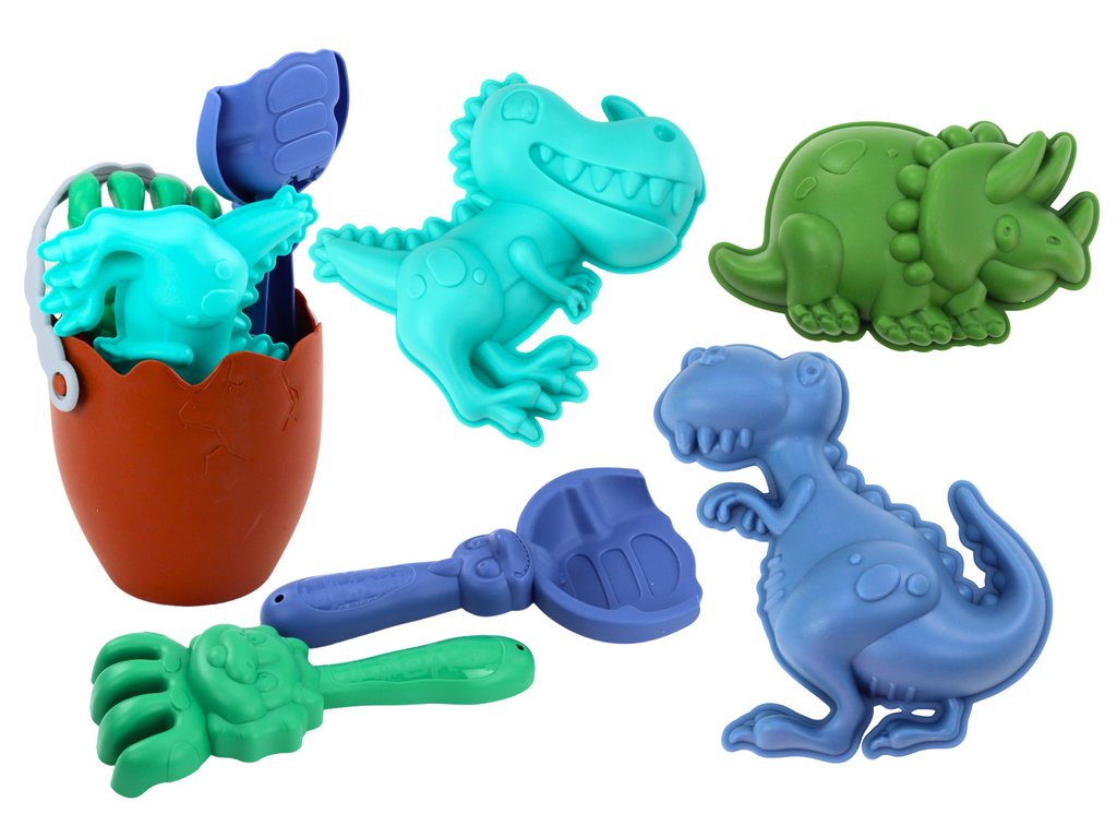 Dinosauři Sada na písek, kyblík, vajíčko, hrabičky, lopatka, Formičky