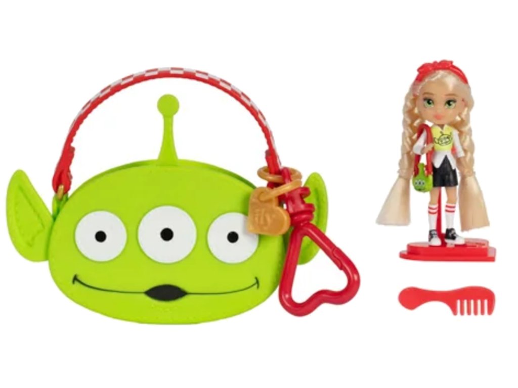 Sada obsahuje mini panenku s dlouhými blonďatými vlasy, oblečenou do oblečku s mimozemskou tématikou Toy Story. Tenisky a mini kabelka ve tvaru mimozemské hlavy dotvářejí vzhled.