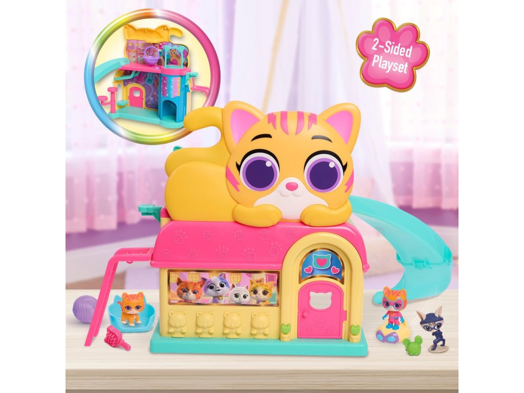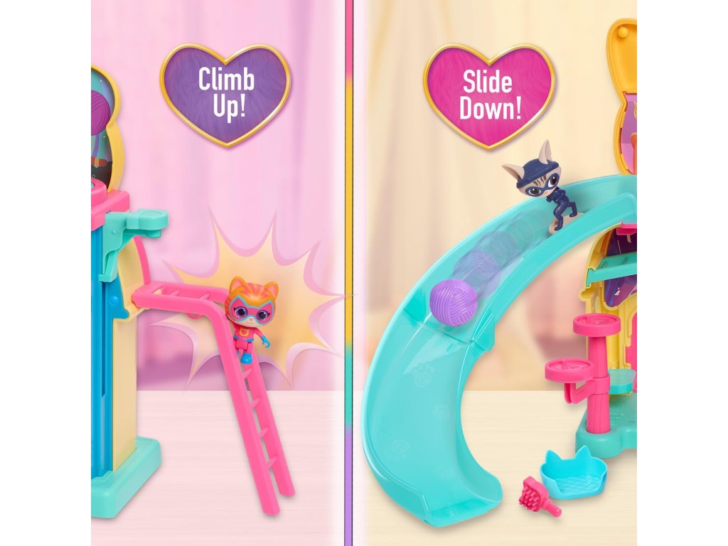 Hřiště je sada představujícírealistický odrazmísta ze série. Díkypřidanému příslušenstvívypadá jako originál. Stisknutímfialového tlačítkavedle výtahuuslyšíme veselou hudbu a světýlka, při kterých se mohou kočičky skvěle bavit. Navíc byly do sady přidány 3 figurky koček- Ginny ve dvou verzích a antihrdina Burger the Cat. Po postavení na plošinu a zatažení za modrou páku se hrdinka přesune do spodního patra apromění se v Super Cat. Pohyb mezi patry bude možný také díkyskluzavceašplhacímu žebříku, které dodají zábavu nápady.