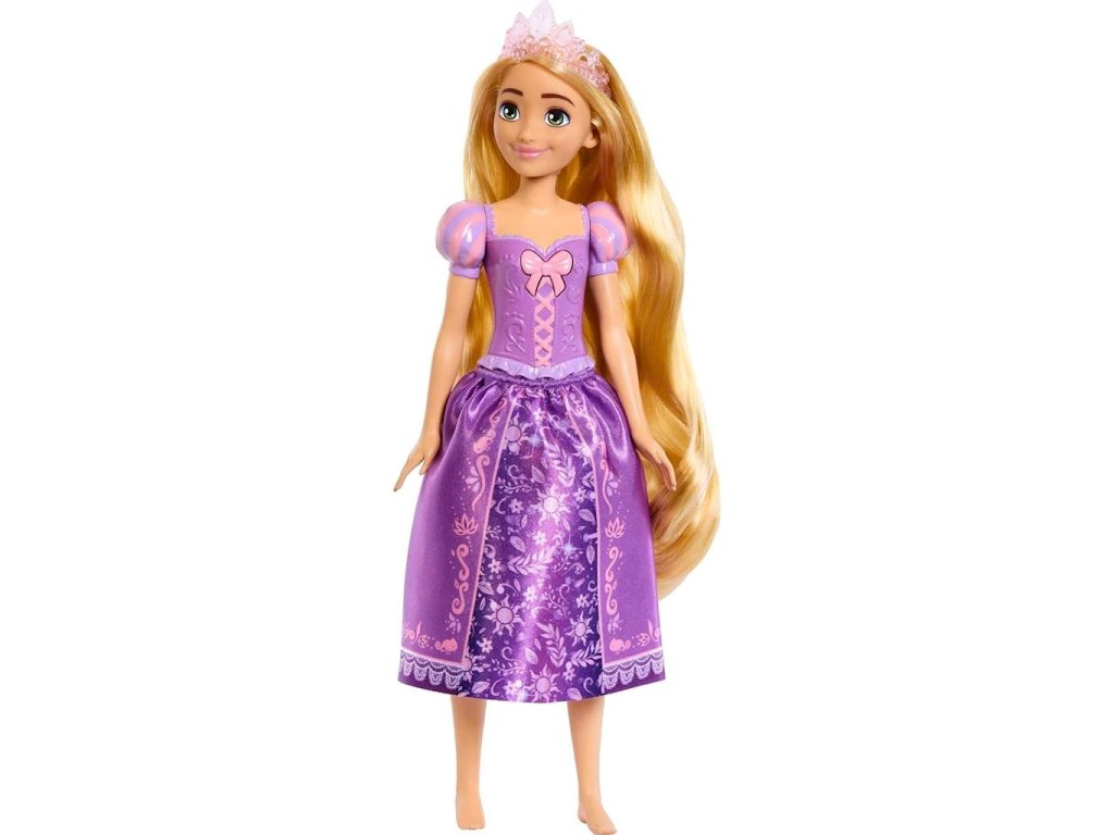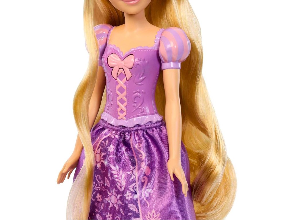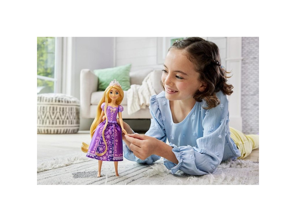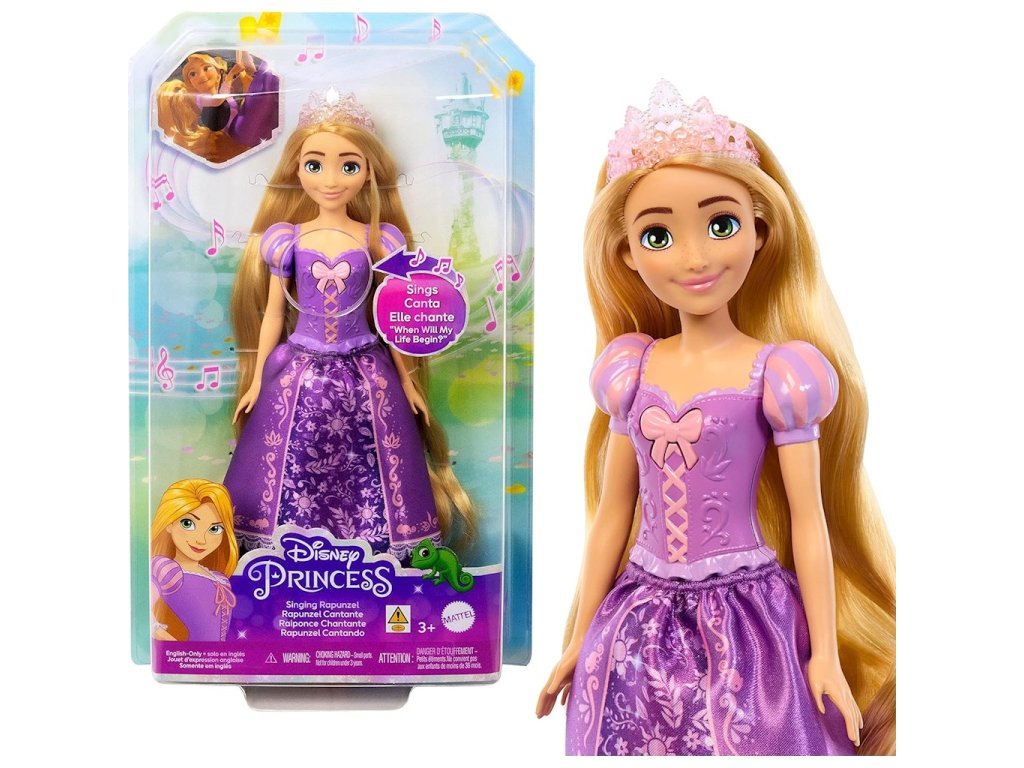 Zpívající anglická panenka Disney Rapunzel HPD41Tato živá a kreativní panenka Rapunzel, inspirovaná animovanou postavičkou z Disneyho filmu Tangled, je připravena na dobrodružství! Fanoušci budou potěšeni, když panenka Rapunzel zazpívá svou charakteristickou píseň "When Will My Life Begin?" Oblečená v klasickém fialovém oblečku, panenka Rapunzel zpívá stisknutím tlačítka. Děti si mohou zopakovat své oblíbené momenty z filmu nebo si vymýšlet vlastní příběhy Rapunzel. Panenka nemůže stát sama.
