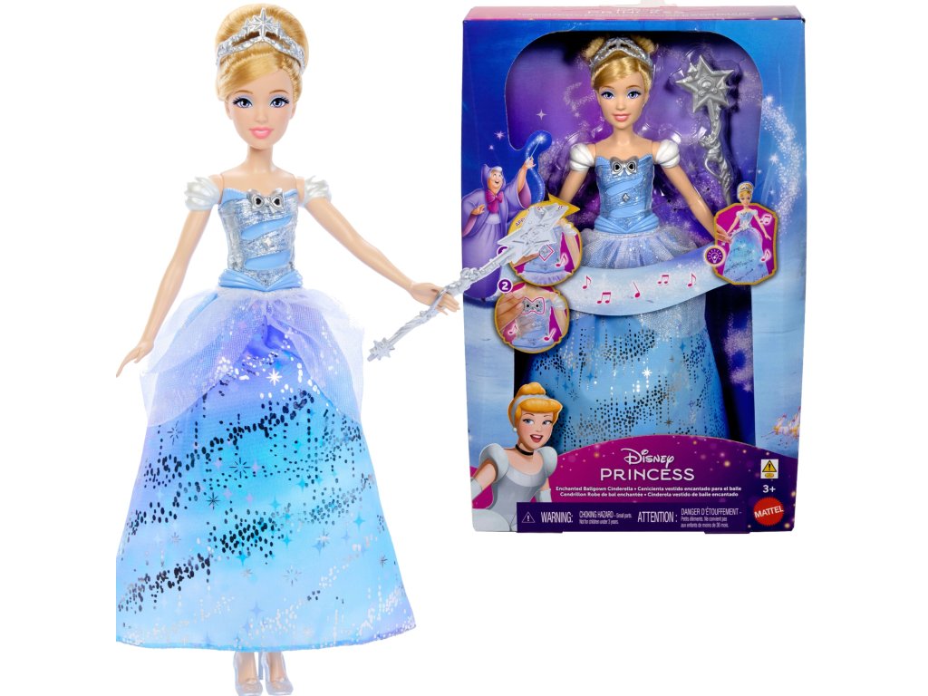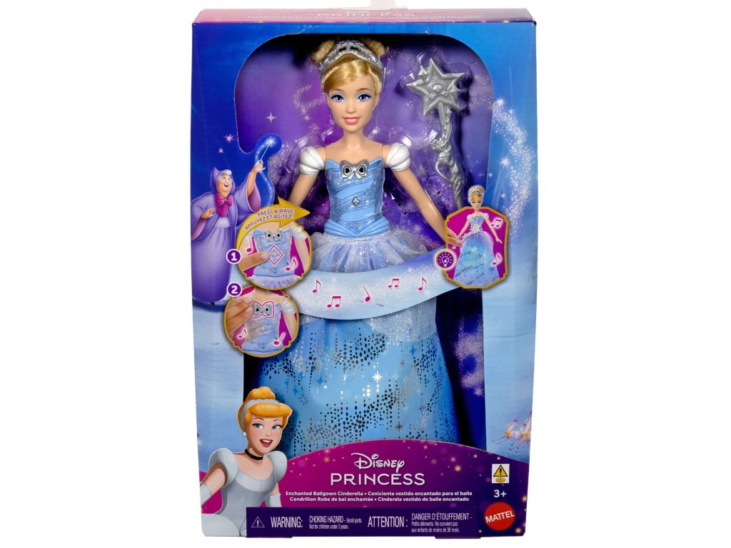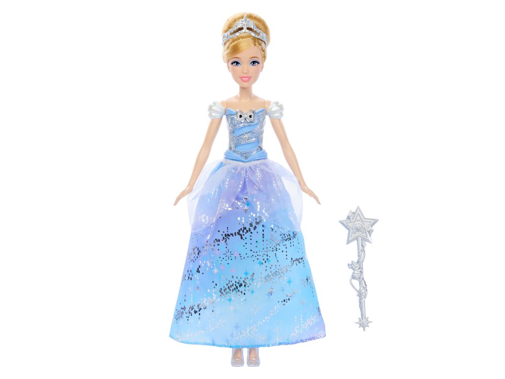 Panenka "Cinderella - Magical Ball Gown" přináší ikonickou transformační scénu přímo z obrazovky dotykem kouzelné hůlky.