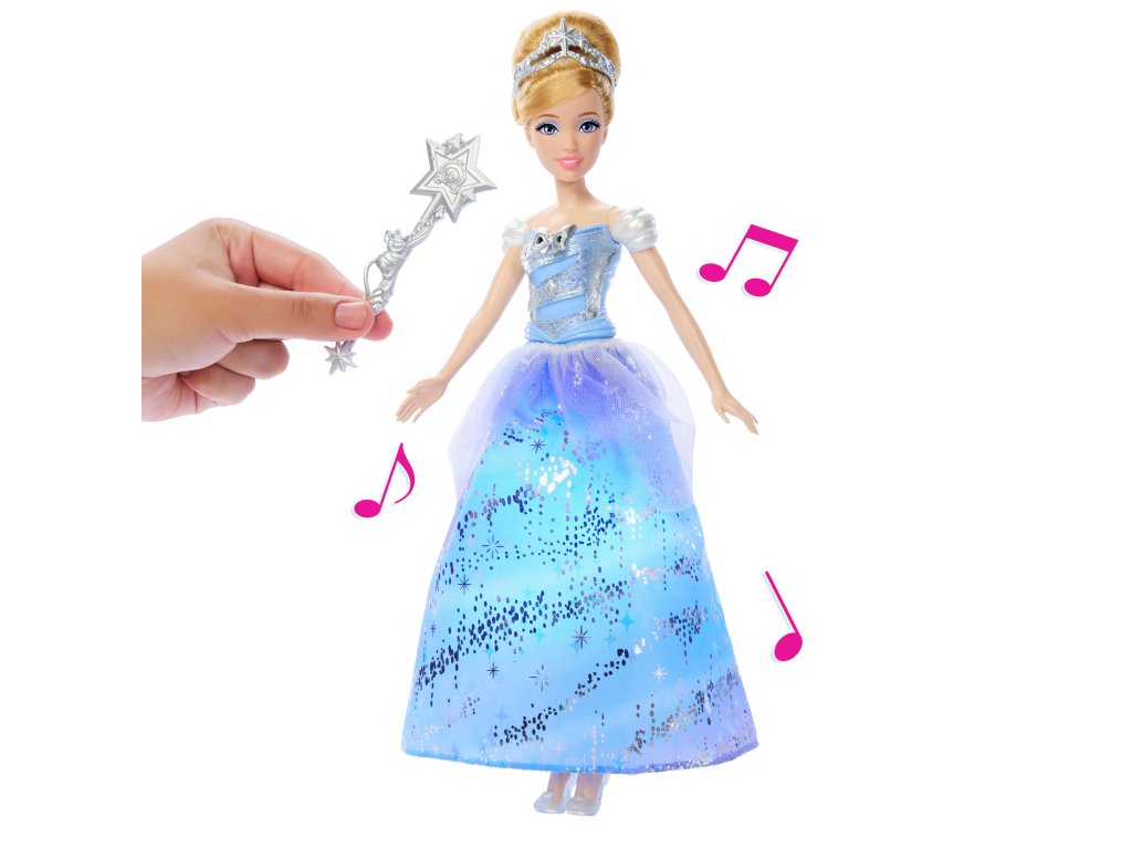 Jedinečná vlastnost hračky spočívá v interakci s hůlkou : jednoduše s ní mávněte nebo s ní posuňte před panenku, aby se šaty rozzářily, a hrály magické zvukové efekty – s různými variacemi, které lze aktivovat vícekrát. Celá věc je napájena přiloženými bateriemi, takže po vybalení můžete ihned spustit světelnou show.