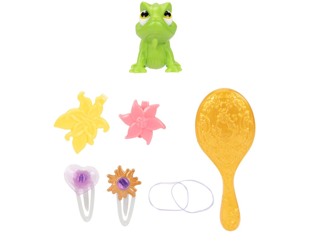 - Módní outfit:Rapunzel má na sobě fialovou a růžovou róbu inspirovanou filmovým vzhledem princezny se sluncem a jemnými pascalovými vzory, které zkrášlují její pohádkovou postavu.