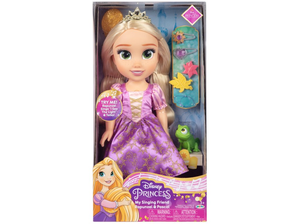Rapunzelje jedinečnáinteraktivnípanenka ze sérieMy Singing Friend , která oživuje kouzelný svět filmu „Tangled“. Jecca. 35 cm vysoká, má dlouhé zlaté vlasy na česání a okouzlujícího Pascala, který ji doprovází - věrný přítel a sladký strážce ztracené princezny.