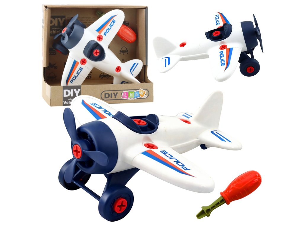 HRAČKA POLICEJNÍHO LETADLA SE SADOU ŠROUBOVÁKŮ