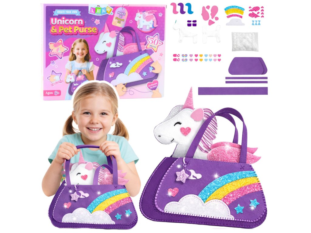 Sada na výrobu tašky s jednorožcem je kreativní hračka určená pro děti, které si rády hrají a vytvářejí si vlastní doplňky. Tato sada vám umožní vytvořit si nápadnou tašku s motivem jednorožce, která rozvíjí manuální zručnost, fantazii a estetický smysl.