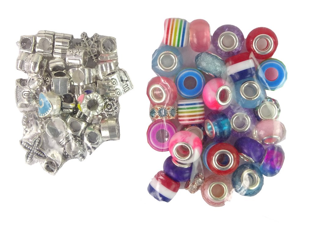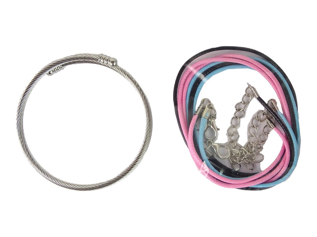 Pokyny krok za krokem vám pomohou porozumět technikám výroby náramků a také vám poskytnou spoustu inspirace a nápadů pro nové designy. Tři 42 cm dlouhé různobarevné řetízky (růžový, modrý a černý) a dva 12 cm dlouhé stříbrné řetízky umožňují různé kompozice. Sada navíc obsahuje 30 barevných plastových korálků a až 60 korálků ve stříbrné a zlaté barvě s půvabnými motivy zvířat, rostlin a dalšími vzory vhodnými pro děti.