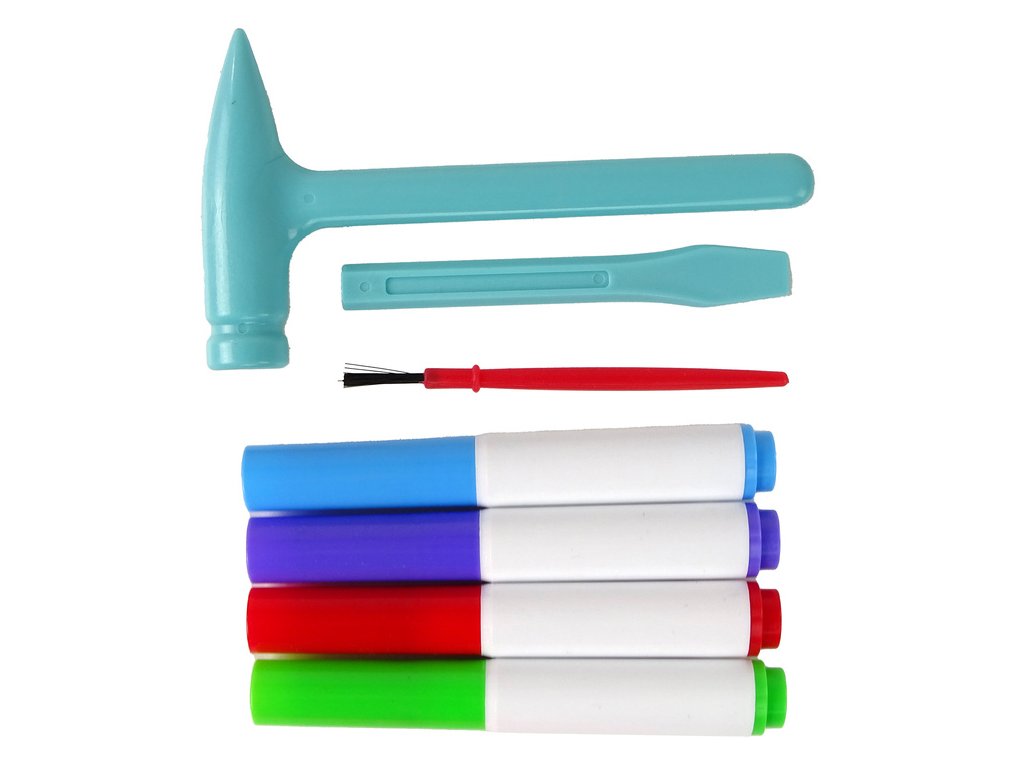 Sada obsahuje dva kameny ve tvaru srdce, každý obsahuje malou hračku - pravidlo je jedno, abyste hračku získali, budete se muset trochu předvést. Vezměte dláto do ruky a natáhněte ho, abyste získali překvapení.