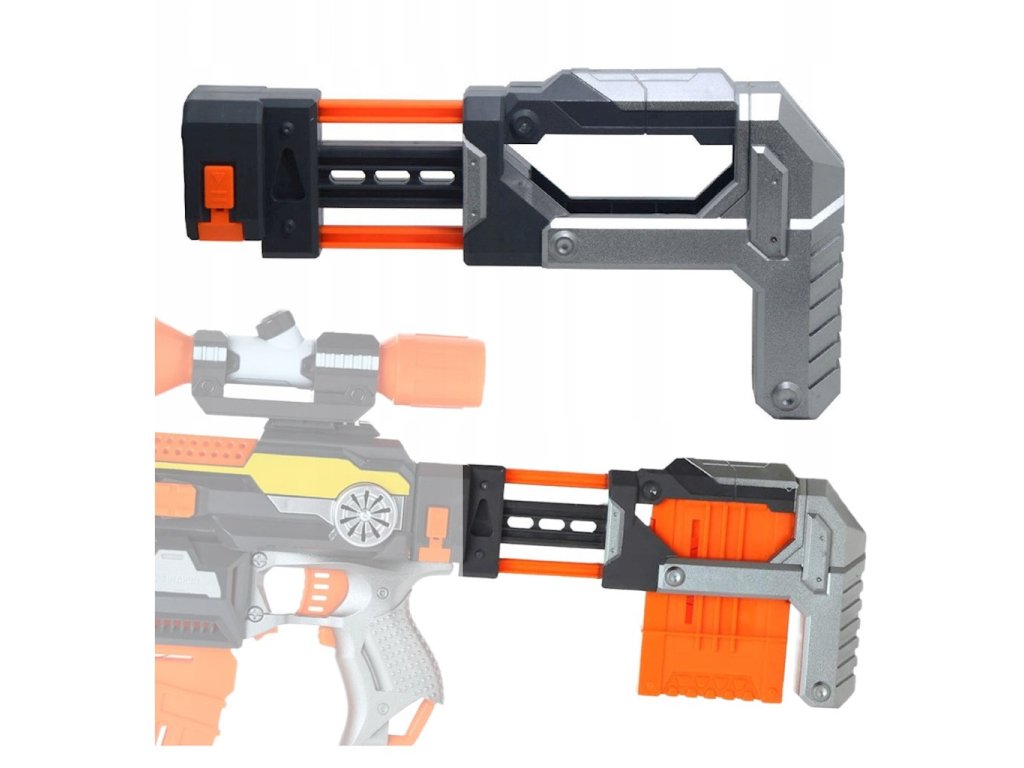 • univerzální střih – pasuje na všechny Nerf blastery s možností montáže pažby (včetně Elite 2.0 Phoenix CS-6, Shockwave RD-15, Commander RD-6)