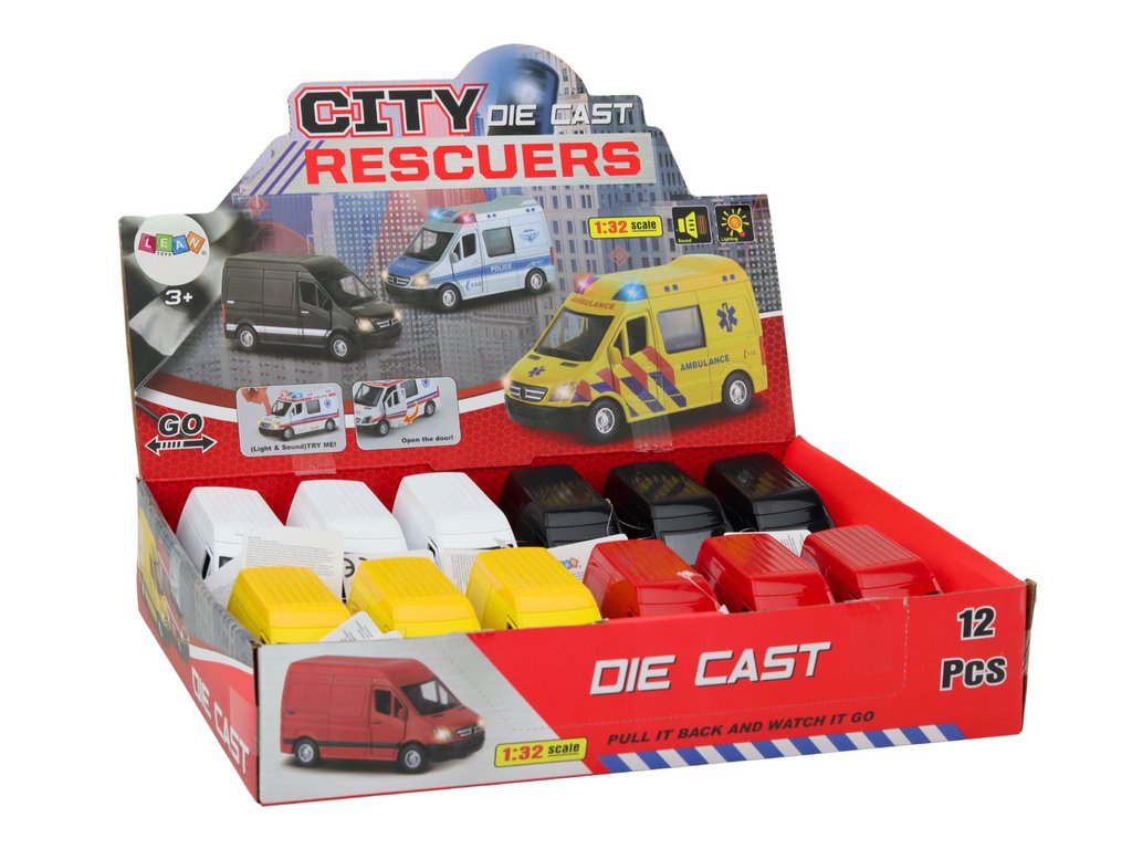Dodávka auta 1:32 Světla Zvuky Červená Černá Žlutá Bílá