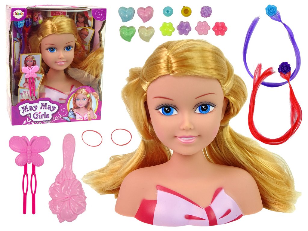 Prezentovaná hlava panenky na česání poskytne všem dívkám hodiny skvělé a kreativní zábavy. Barevné doplňky obsažené v sadě lze umístit do vlásků panenky i dítěte. Vytvořte společně se svým dítětem různé obrázky panenky - účesy do školy, narozeniny nebo rodinné oslavy nemusí být nudné a banální.