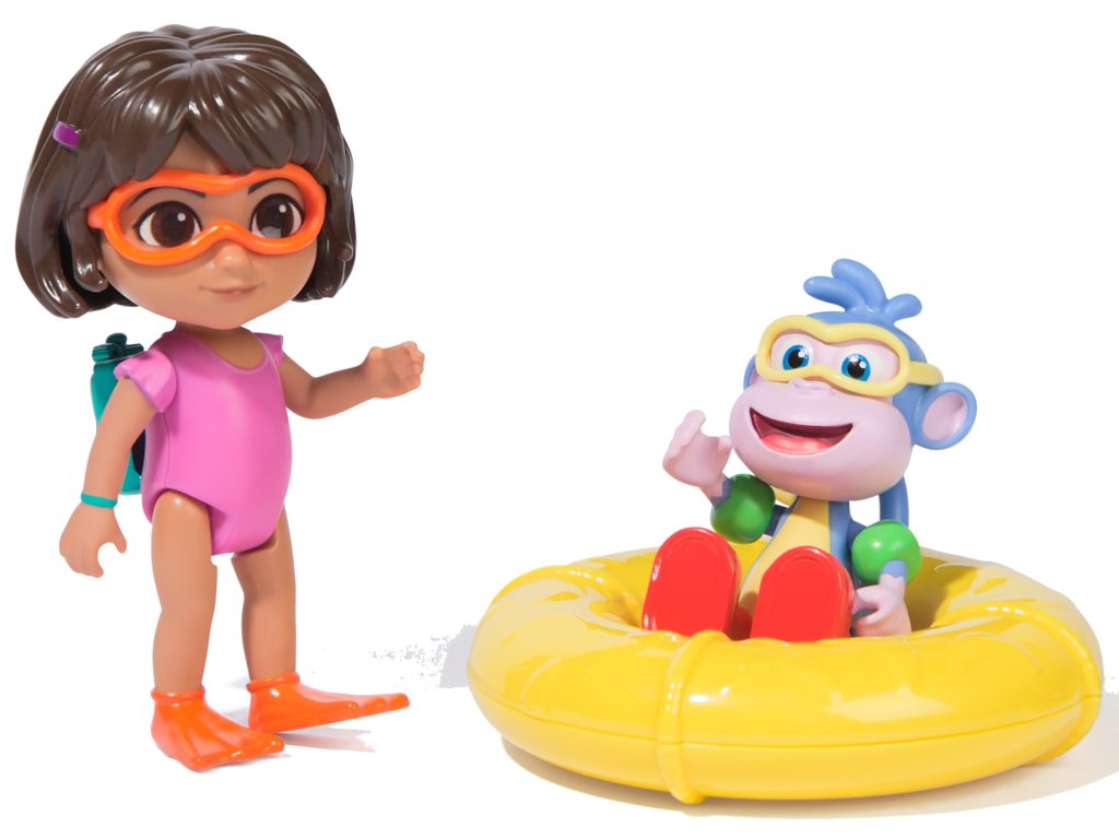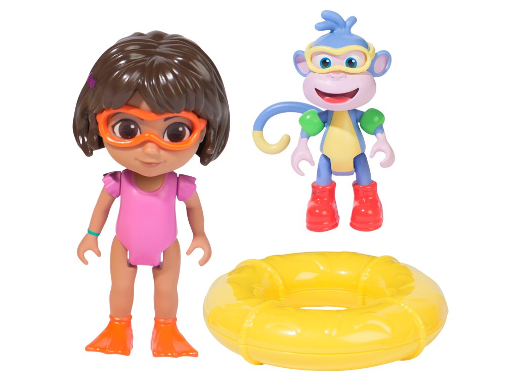 Spolu s figurkou dívky obsahuje sada její opičí kamarádku - Boty. Má na sobě zelené pásky a charakteristické červené boty. Postavy navíc nosí brýle pro bezpečnost při hraní ve vodě. Sada obsahuje také velký žlutý plavecký kruh.