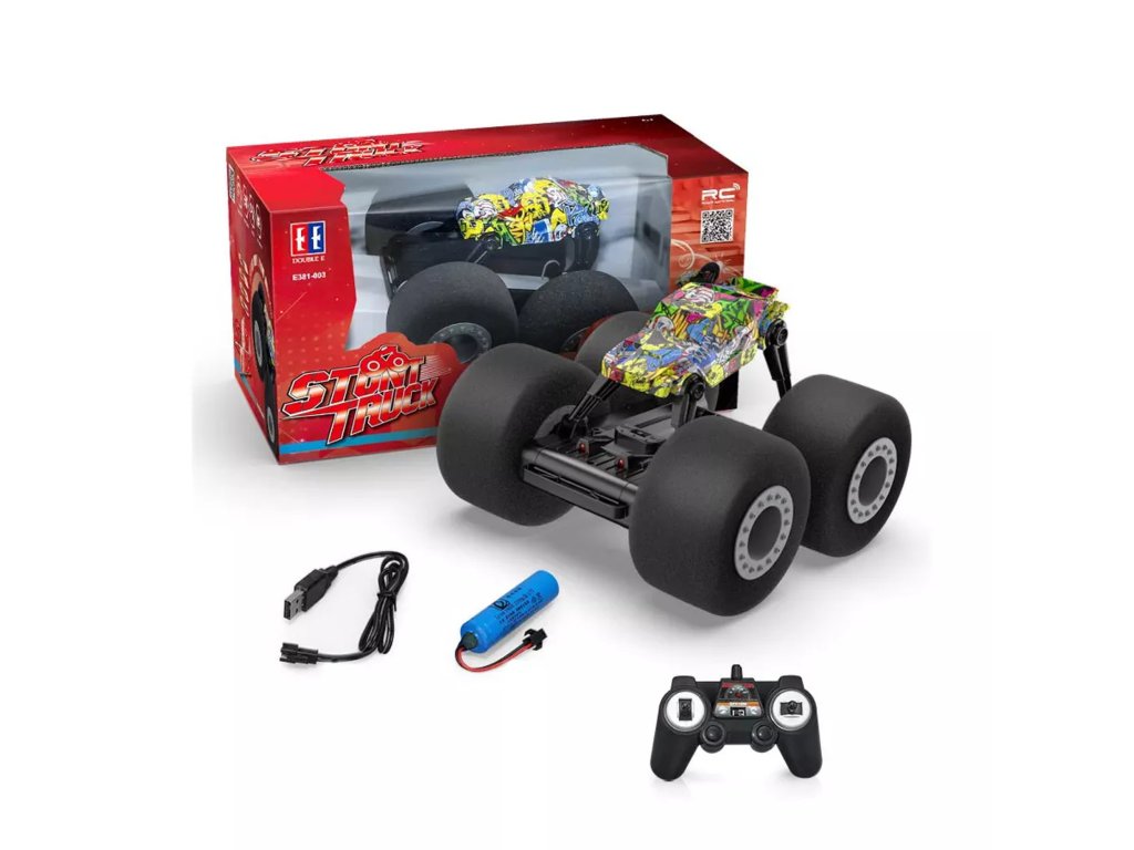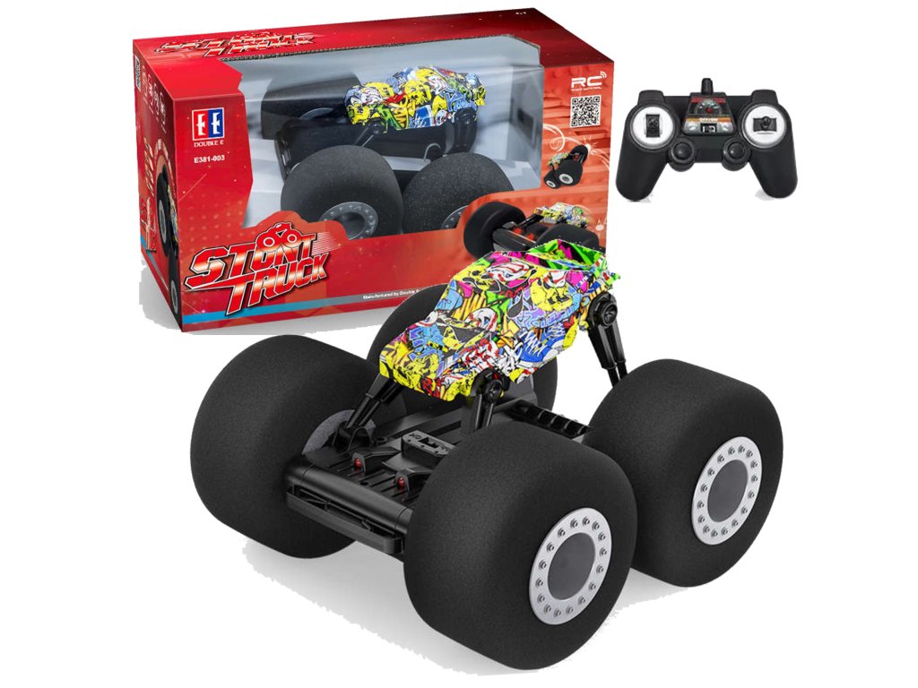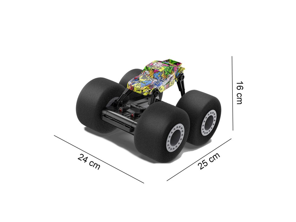 Vozidlo se může převrátit, otočit o 360 stupňů a skákat! Ovládá se pomocí přiloženého dálkového ovladače .