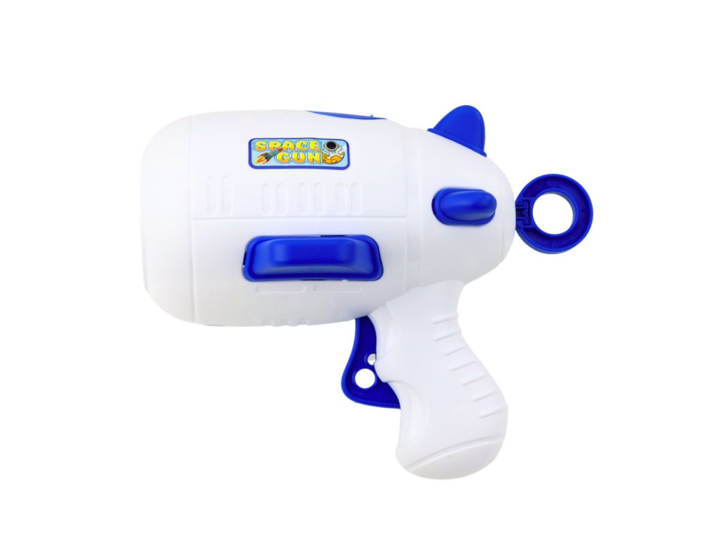 - Pistole ve tvaru vesmírné lodi s pružinovým mechanismem umožňujícím snadné nabíjení a odpalování kuliček.