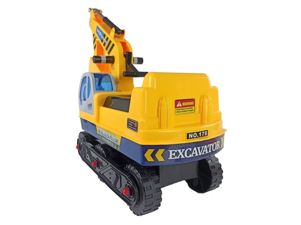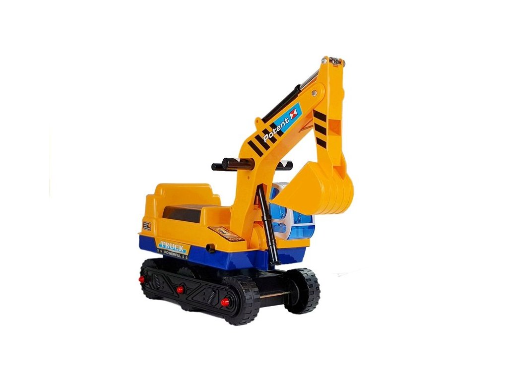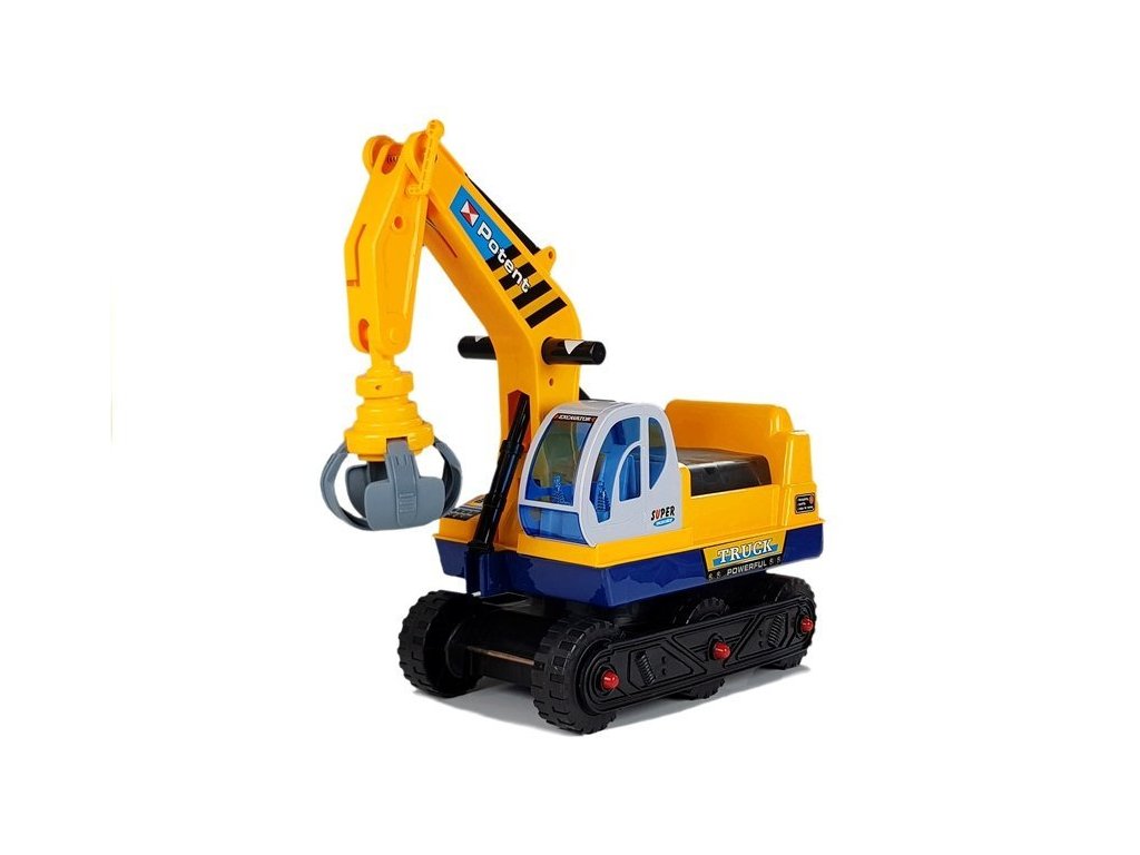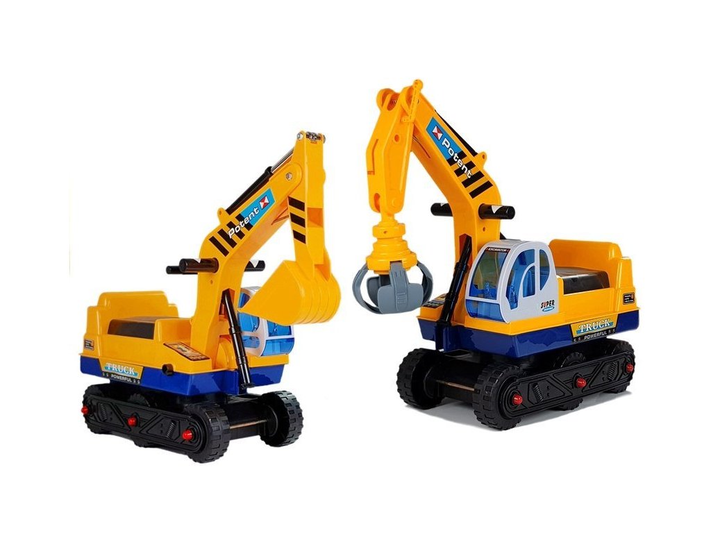 Každé dítě sní o tom, že bude operátorem svého vlastního bagru. Při sezení na prezentované jízdě se bude Vaše dítě cítit jako na skutečné stavbě. Bagr má dlouhé, pohyblivé rameno. Žlutý bagr v sadě má vyměnitelné rameno. Během okamžiku se můžeme změnit z obsluhy bagru na Vozidlo s obsluhou drapáku. Nyní budeme moci chytat a převážet různé hračky.To dokonale rozvine manuální dovednosti dítěte.