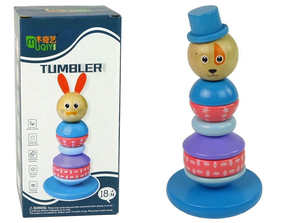 Dřevěná vzdělávací pyramida pes s kloboukem vyrovnávací věž