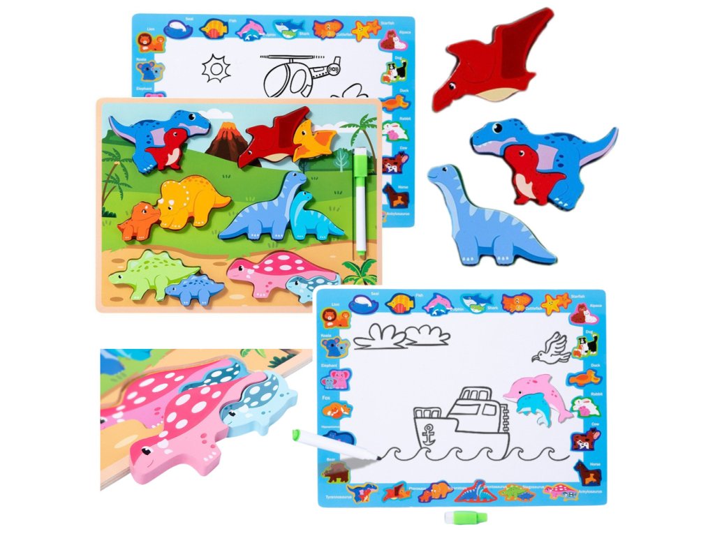 Dřevěná vzdělávací tabule 2v1 Puzzle Dinosauři 12ks + Fix