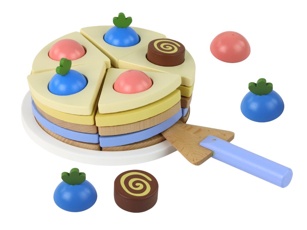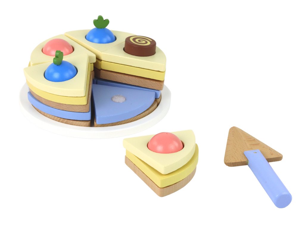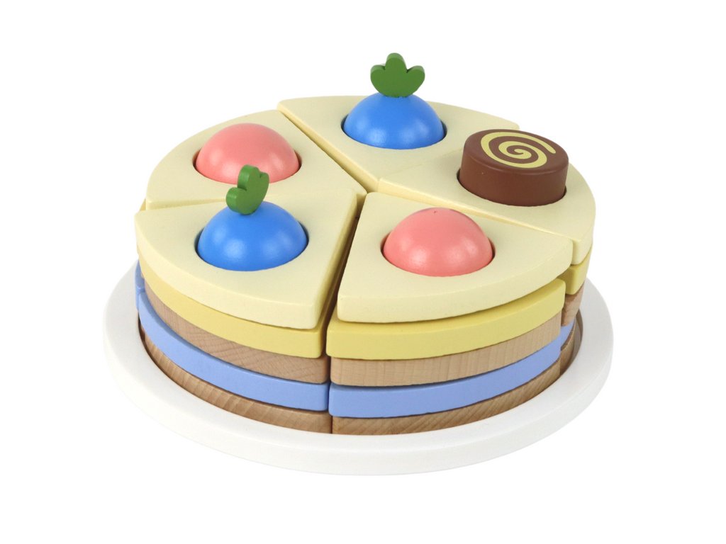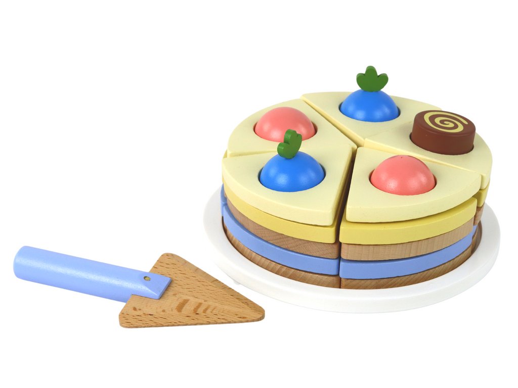 Dort se skládá z různobarevných dílků, díky čemuž je sada vizuálně atraktivní. Děti si mohou procvičovat rozpoznávání barev a rozvíjet svou fantazii tím, že si dort naaranžují libovolným způsobem.