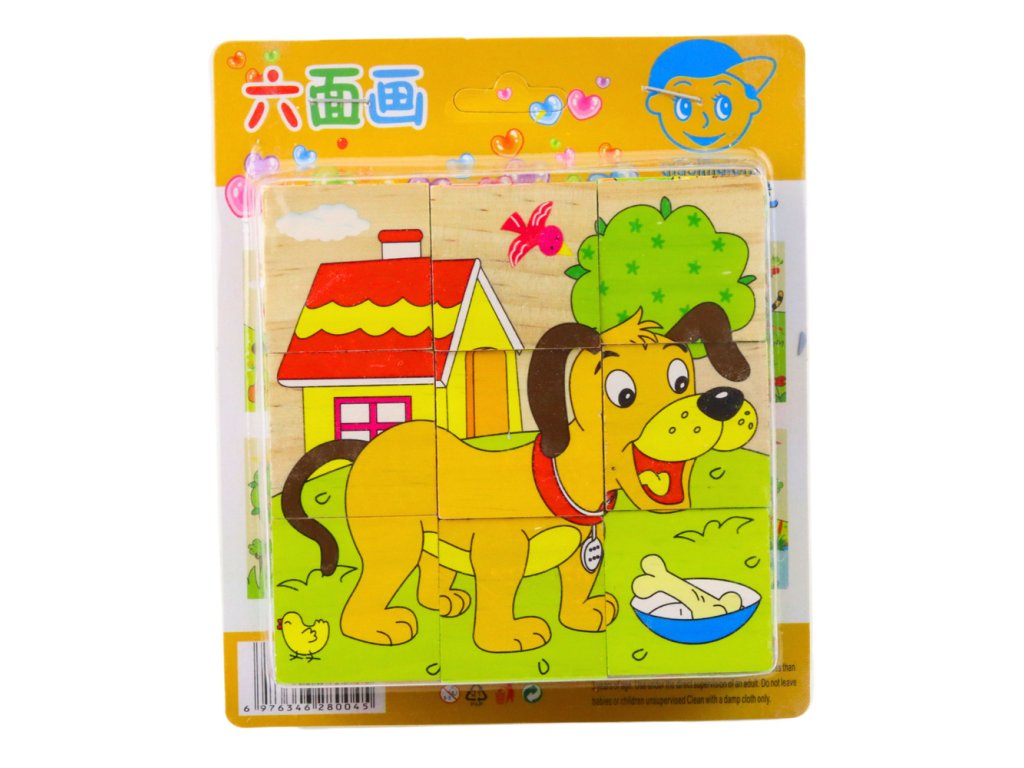 Dřevěné puzzle kostky farma – vzdělávací puzzle se zvířaty, 6 obrázků