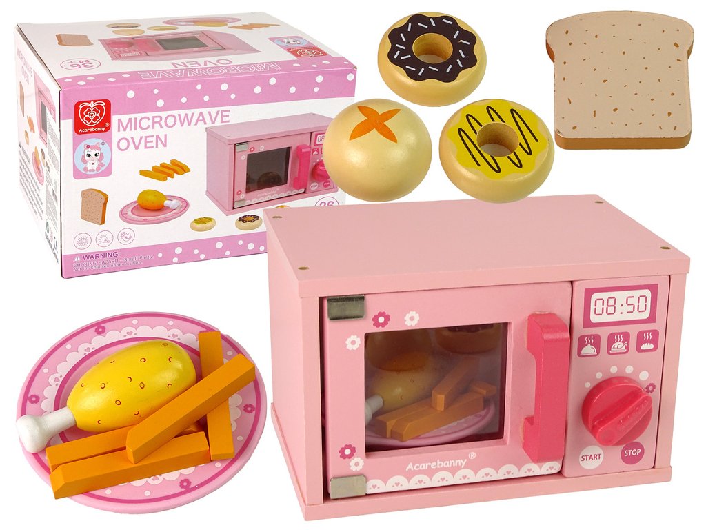 Mikrovlnná trouba bude skvělým doplňkem každé dětské kuchyňky a tematického koutku. Dřevěná hračka umožní hraní rolí, učení se připravovat jídla, batole může napodobovat své rodiče. Pozitivně to ovlivní integraci s ostatními dětmi.
