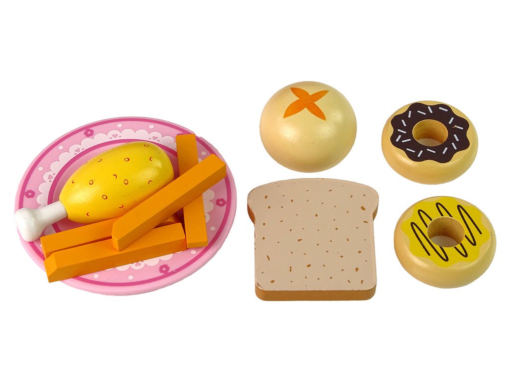 Dřevěná mikrovlnná trouba má otevírací dvířka a knoflík. Když jím otočíte, uslyšíte bouchnutí. Přiložené příslušenství vám umožní připravit jídlo, můžete si udělat večeři a přitom udržovat objednávku v přípravě.
