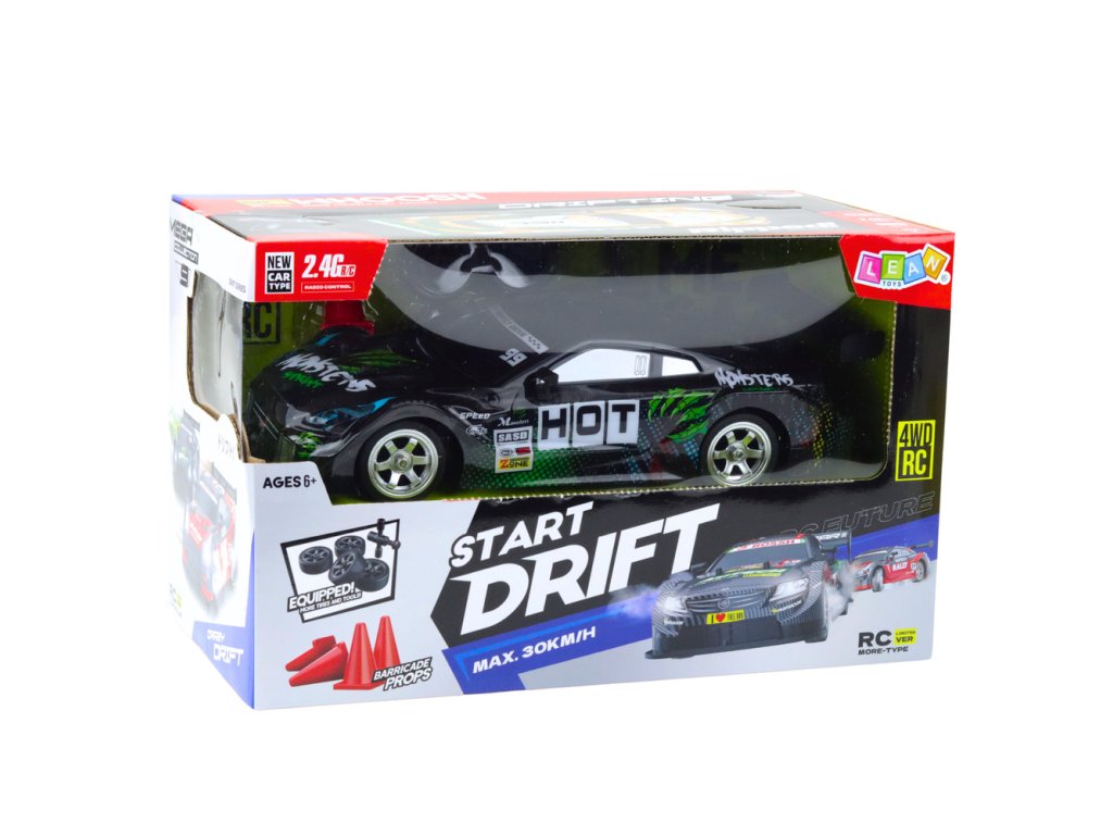 Driftovací auto RC černé zelené 30 km/h 1:16