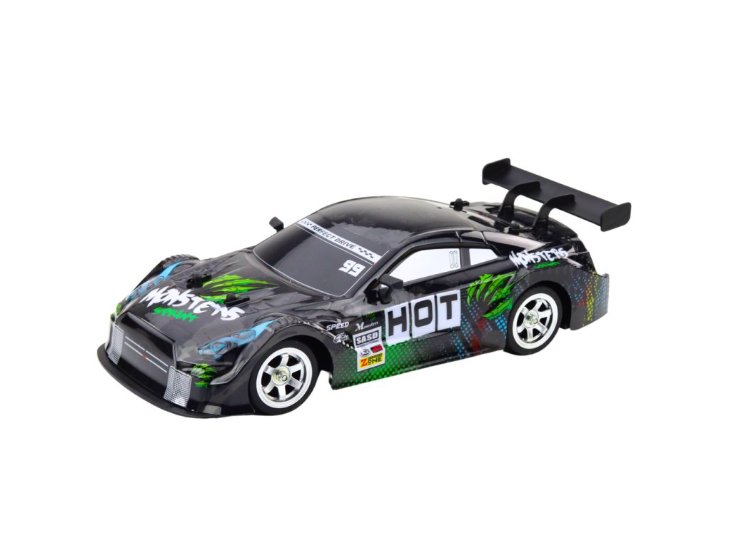 Dálkově ovládané RC závodní auto je dynamická hračka určená pro nadšence rychlé jízdy a sportovních emocí. Model v měřítku 1:16 přitahuje pozornost velkolepým černozeleným vzorem inspirovaným stylem „Monster Racing“, agresivní linií karoserie a spoilerem, který zdůrazňuje jeho sportovní charakter. Vůz dosahuje rychlosti až 30 km/h, takže je ideální pro driftování a jízdu na různých površích.