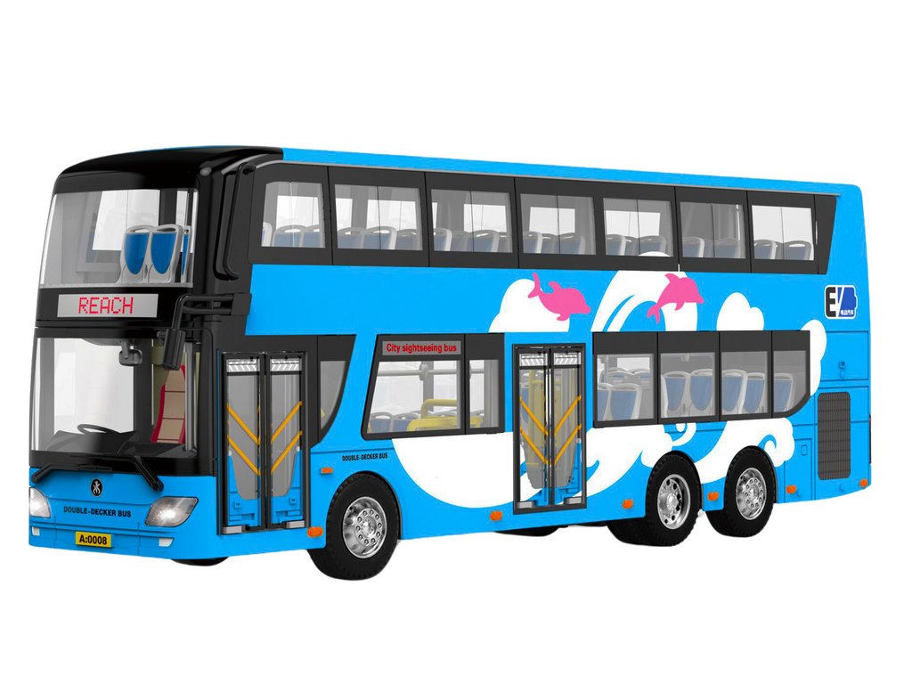 Dvoupatrový turistický autobus 1:42 Kovová světla Modrá