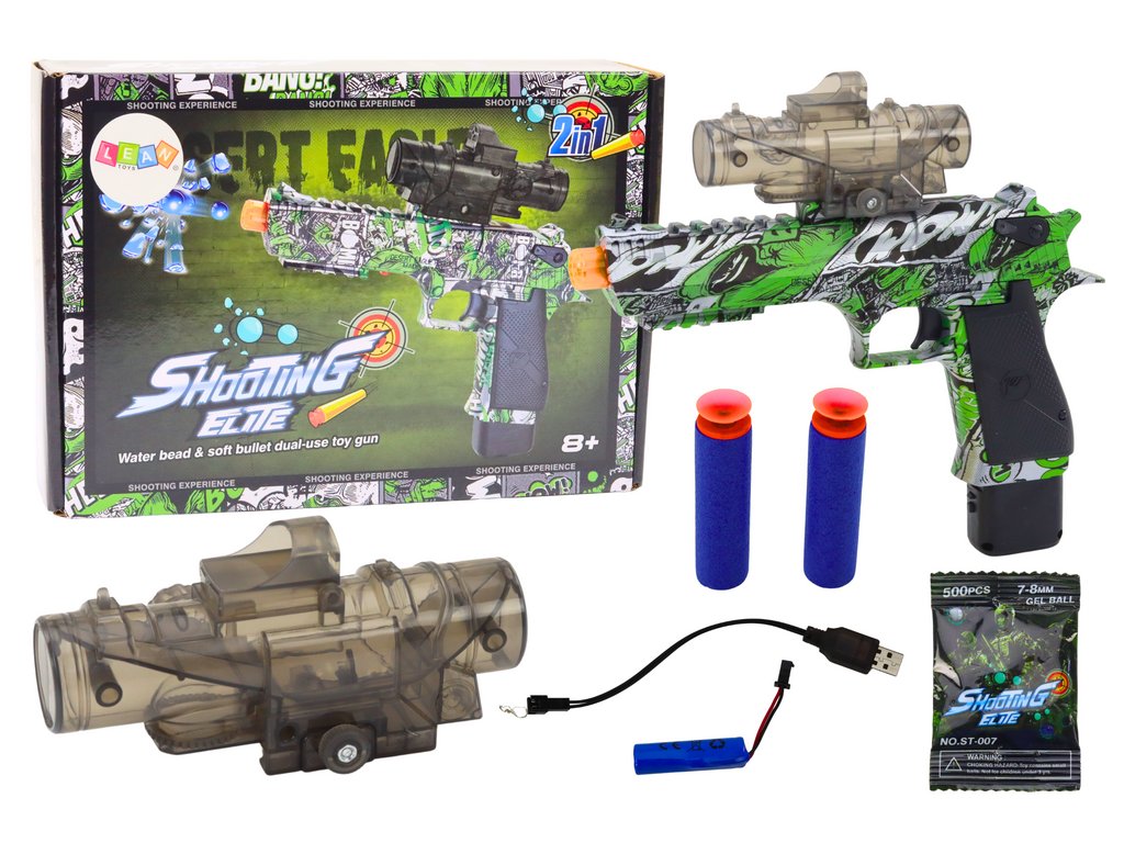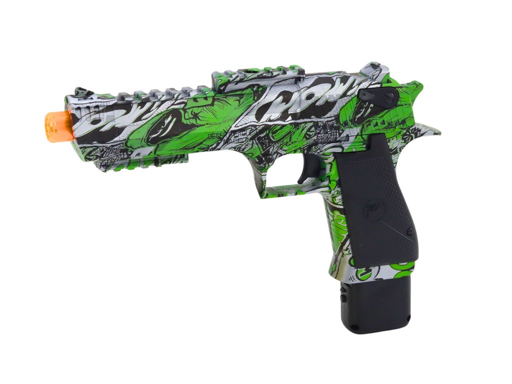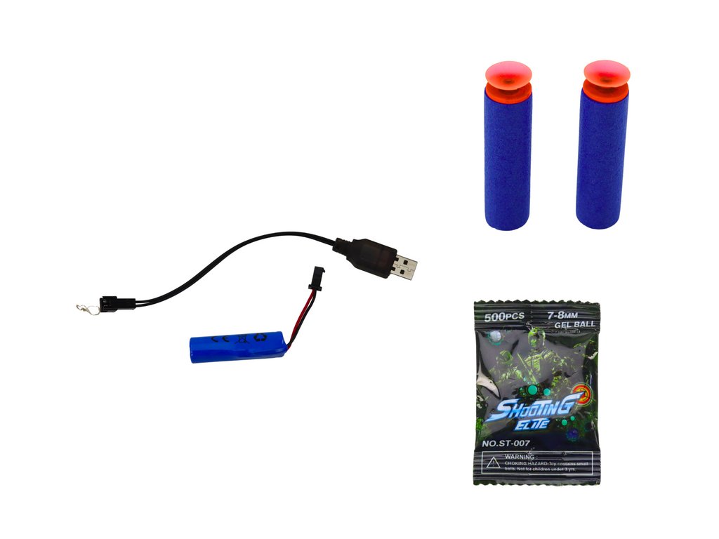 Elektrická pistole napájená dobíjecí baterií, která je součástí dodávky USB kabelu. Pistole pro děti od 14 let.