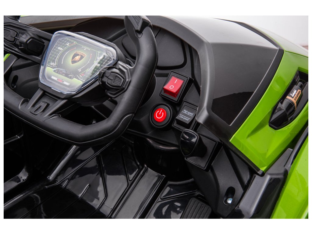 Jedna věc, kterou nelze ignorovat, jsou výkonové a hnací komponenty vozu. Pod „kapotou“ rapidu Lamborghini se nachází baterie 12V7Ah a čtyři 45W motory každý. Právě díky nim může malý řidič jet se svým vozidlem rychlostí 3 až 5 km/h. Používání auta je velmi intuitivní a jednoduché – stačí zapnout vypínač, který bude doprovázen zvuky spouštění motoru a svícení, a poté sešlápnout plynový pedál a jet opatrně. Využít můžete i druhé řešení, které vašemu batoleti trochu pomůže - sada obsahuje spolehlivý 2,4G dálkový ovladač, který vám umožní ovládat auto z jeho úrovně.