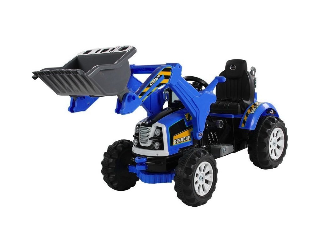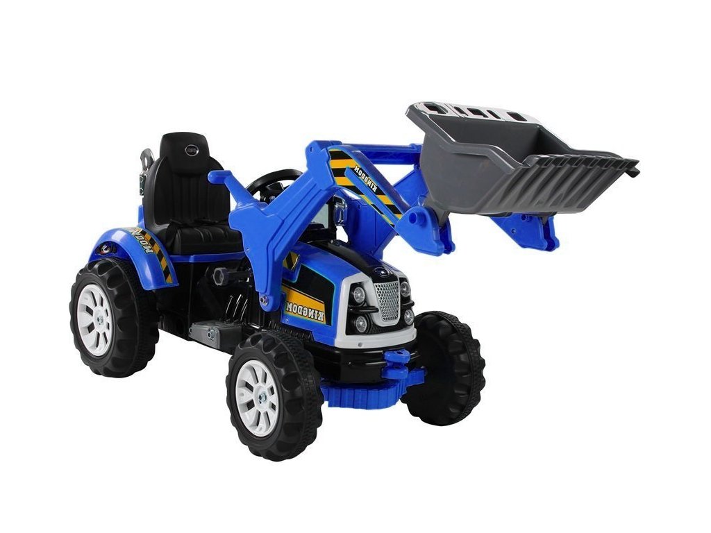 Rýpadlo-nakladač pro víceleté děti je vyroben z certifikovaného pevného modrého plastu. Jeho konstrukce je založena na čtyřech kolech - přední 28 cm x 10 cm a zadní - 32 cm x 13 cm. Tato kola mají protektorovanou strukturu, díky které může batole jezdit s bagrem po různých typech povrchů, aniž by při hraní generovalo obtěžující hluk. Vozidlo pro batole je poháněno dvojitou baterií o celkovém výkonu 2x6V7Ah, kterou doprovázejí motory 2x45W. Tyto komponenty umožňují hrát v rychlostech v rozmezí 2 až 6 km/h. Traktor je určen pro chlapce i dívky od 3 let - jediným omezením je zatížení nad 30 kg. Modré stavební vozidlo má certifikát CE, je zabaleno v originální kartonové krabici, uvnitř které je také baterie, nabíječka a návod na vlastní montáž.