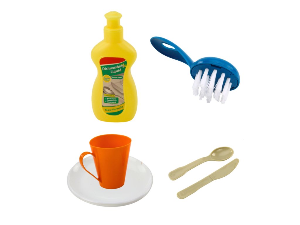 Sada obsahuje 12 kuchyňských prvků, které dětem umožňují mýt nádobí, připravovat imaginární pokrmy, hrát si na kuchaře nebo napodobovat domácí práce. Harmonické barvy a bezpečné, zaoblené tvary činí hračku vizuálně přitažlivou a vhodnou i pro mladší uživatele.