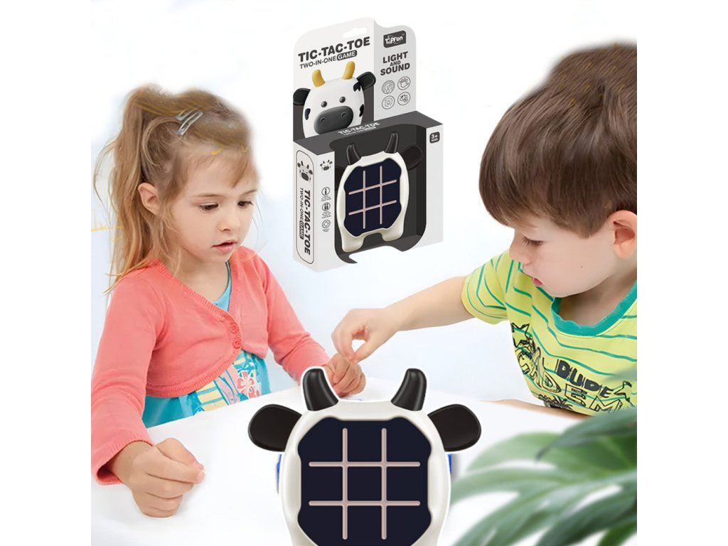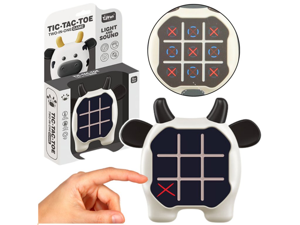 Elektronická hra Cow 3v1 je moderní verzí klasické hry Tic Tac Toe, která nabízí ještě více vzrušení, interaktivní zábavy a vzdělávacích výhod! Spojením strategie, reflexů a paměťových cvičení hra dokonale podporuje intelektuální rozvoj dětí a zároveň poskytuje zábavu pro nejmenší i dospělé.