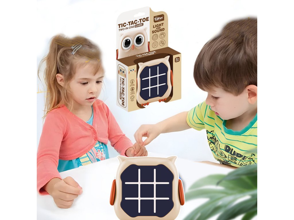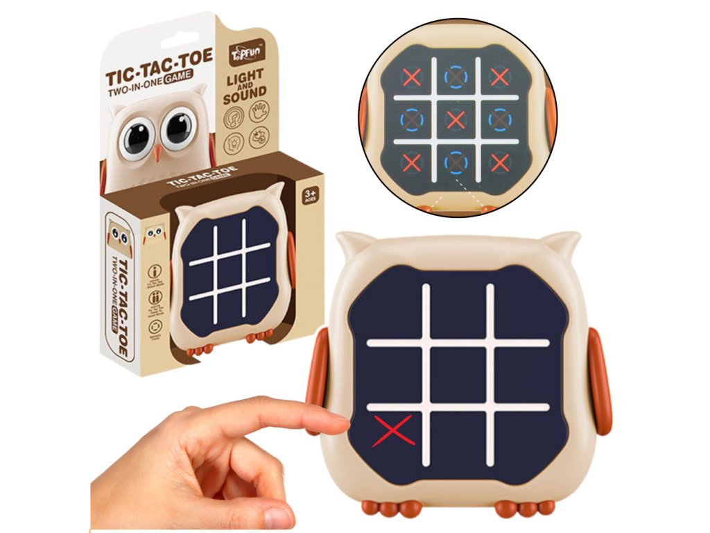 Elektronická hra Owl 3v1 je moderní verzí klasické hry Tic Tac Toe, která nabízí ještě více vzrušení, interaktivní zábavy a vzdělávacích výhod! Spojením strategie, reflexů a paměťových cvičení hra dokonale podporuje intelektuální rozvoj dětí a zároveň poskytuje zábavu pro nejmenší i dospělé.