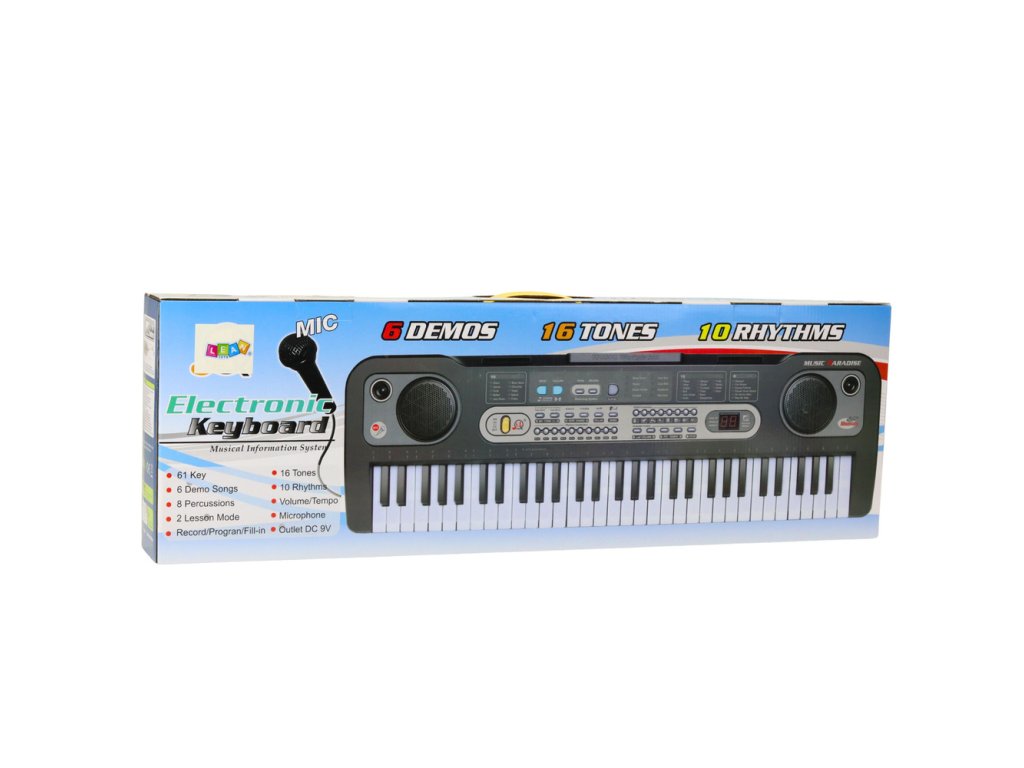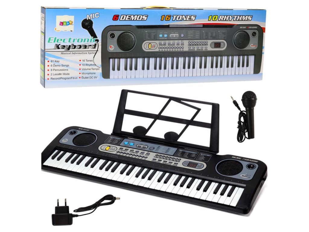 Tato klávesnice s působivou velikostí obsahuje podsvícené klávesy a řadu funkcí, které dětem umožňují skládat vlastní písničky nebo přehrávat stávající melodie. Nástroj obsahuje 6 demo skladeb, 16 tónů, 10 rytmů, ovládání tempa a hlasitosti a další funkce, jako je nahrávání a přehrávání.