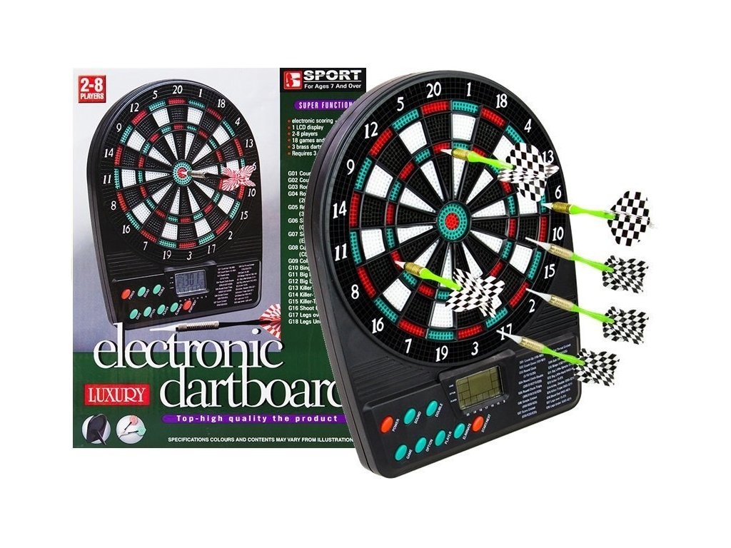 Sada nabízí až 18 různých her se 159 variantami, což znamená, že vám nikdy nedojde rozmanitost her. Zvuky doprovázející hru dodávají dynamiku a emoce. Soutěžit můžete ve skupině 2 až 8 hráčů, díky čemuž je hra ideální pro večer s přáteli. LCD displej umožňuje sledovat vaše výsledky a ovládání hlasitosti upravuje zvuky podle vašich preferencí. Sada obsahuje až 12 šipek, což vám umožní hrát po dlouhou dobu.