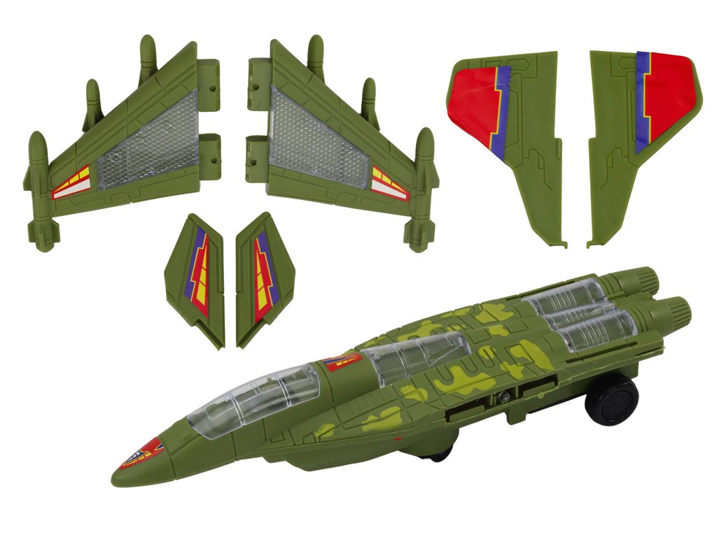 Stíhačka je napájena 3x 1,5V AA bateriemi, které nejsou součástí sady.