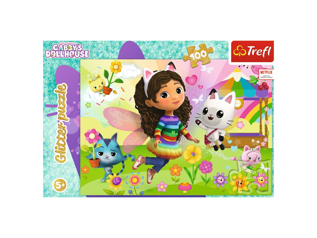 Trefl Puzzle 100 s třpytkami Kočičí domeček Gabi a přátelé 5+
