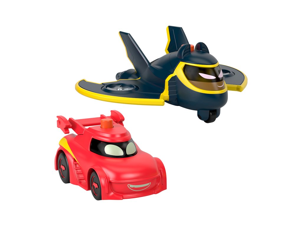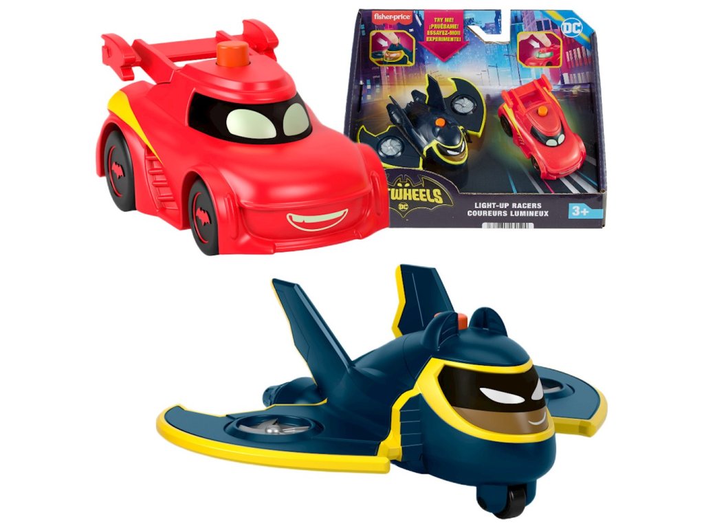 Sada vozidel Fisher-Price DC Batwheels Batwing a Redbird HML26Boj proti zločinu zahřeje s autíčky Fisher-Price Batwheels Light-Up Racers. Děti v předškolním věku mohou stisknout tlačítko na střeše každého vozidla a vidět, jak jejich oblíbená postava ožije rozsvícenými výrazy! Každá sada vozidel obsahuje 2 postavičky v měřítku 1:55 z představení s autentickým stylem Batwheels a skutečnými funkčními koly. Hledejte další auta Batwheels Light-Up Racers pro ještě nasvícenější dobrodružství v boji proti zločinu!